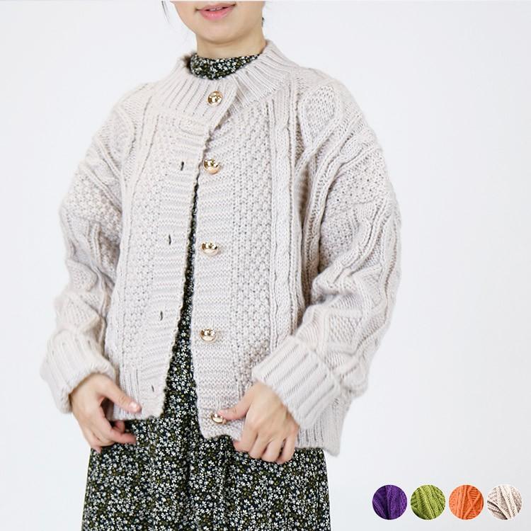 ニット カーディガン レディース ざっくり ドルマン袖 ケーブルニット アウター ゴールドボタン ベージュ 紫 韓国 Jo At 27 海外ファッション Joyfeel 通販 Yahoo ショッピング