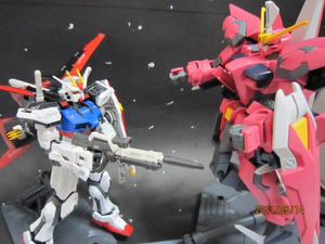 みなも Pa Twitter Robot魂 ロボット魂 ガンダムseed ストライクとイージス 激しい攻防の末 イージスがストライクに組み付いて自爆するシーン 本当なら最後イージスのエネルギーが切れ フェイズシフト装甲がダウンし灰色になっているのですが 流石に再現は難しい